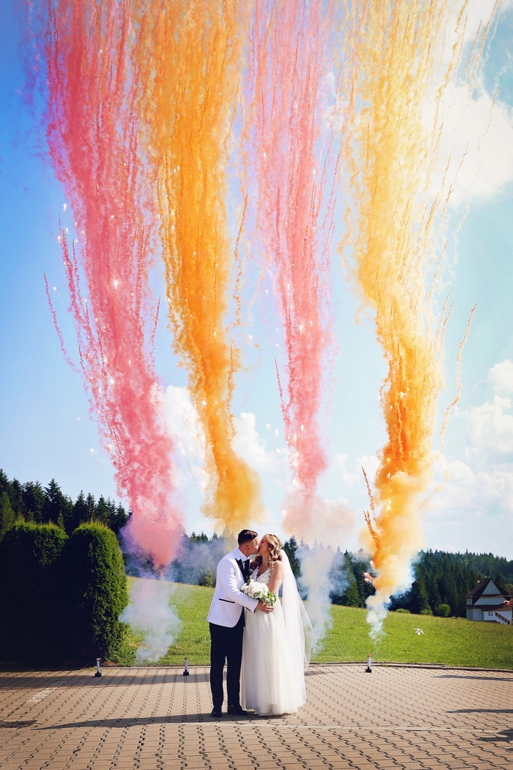 - Zimne ognie : Zimne ognie to naprawdę magiczna atrakcja weselna, która z pewnością przyciągnie uwagę gości i doda niepowtarzalnego klimatu. Są bezpieczniejsze niż tradycyjne fajerwerki, a ich spektakularny efekt świetlny świetnie pasuje do wielu momentów wesela.